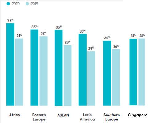 - There has been a jump in Africa, Latin America, and ASEAN.